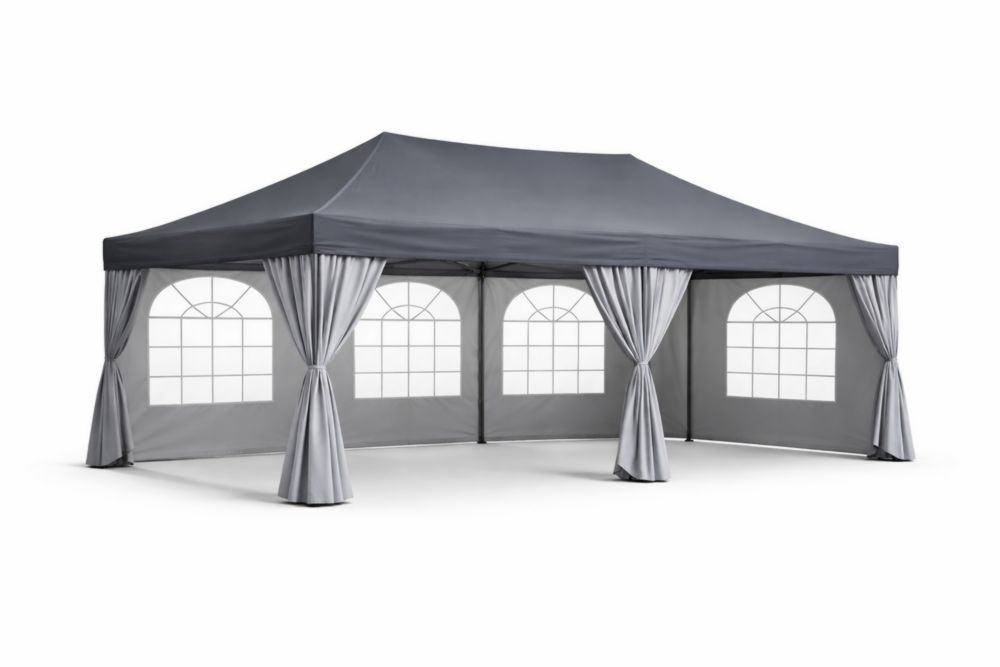 Tente Réception 6x3m Polyester Gris Fenêtres