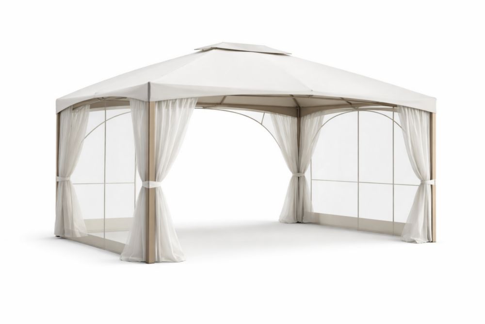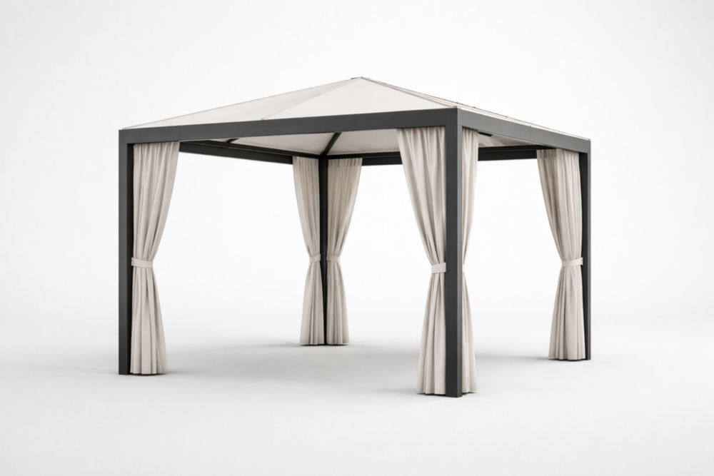 Pavillon en Aluminium Beige avec Rideaux Amovibles