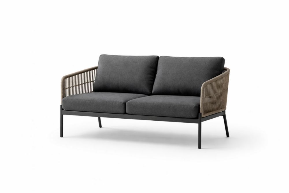 Canapé d'extérieur 2 places aluminium corde polyester gris