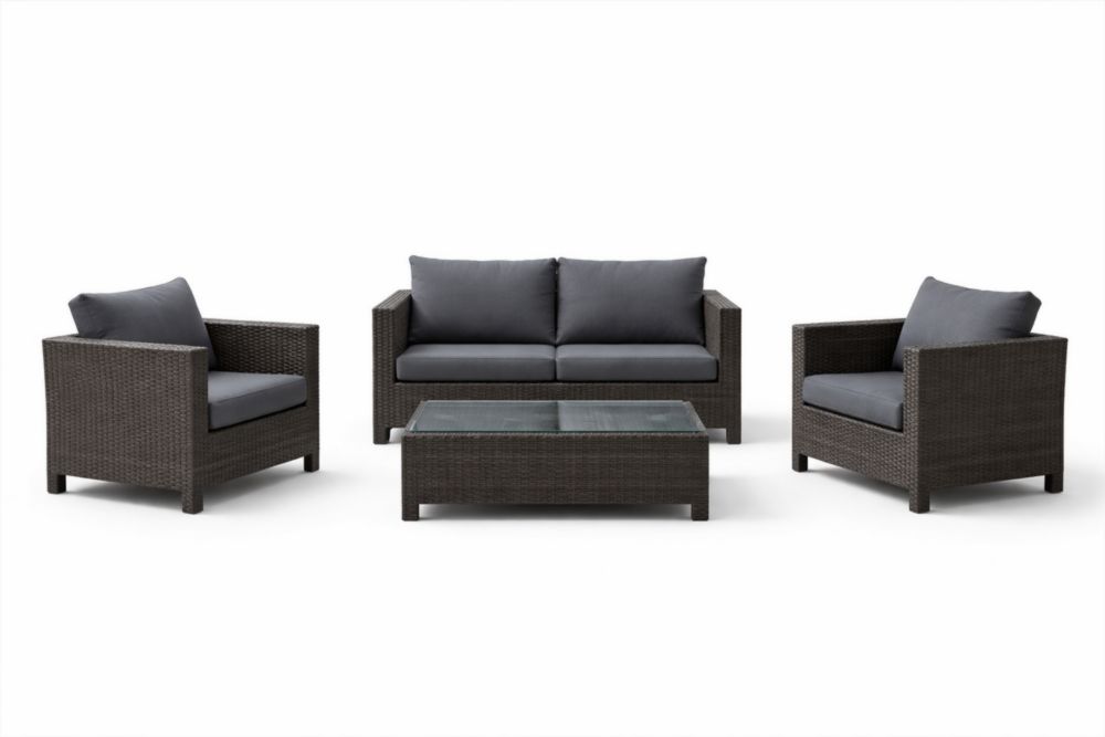 Ensemble de salon de jardin en résine tressée avec table en verre