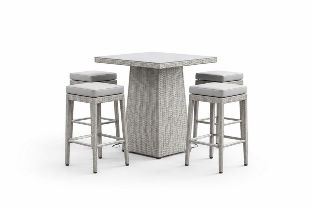 Ensemble de Jardin en Résine Tressée Gris avec Plateau en Verre et 4 Tabourets